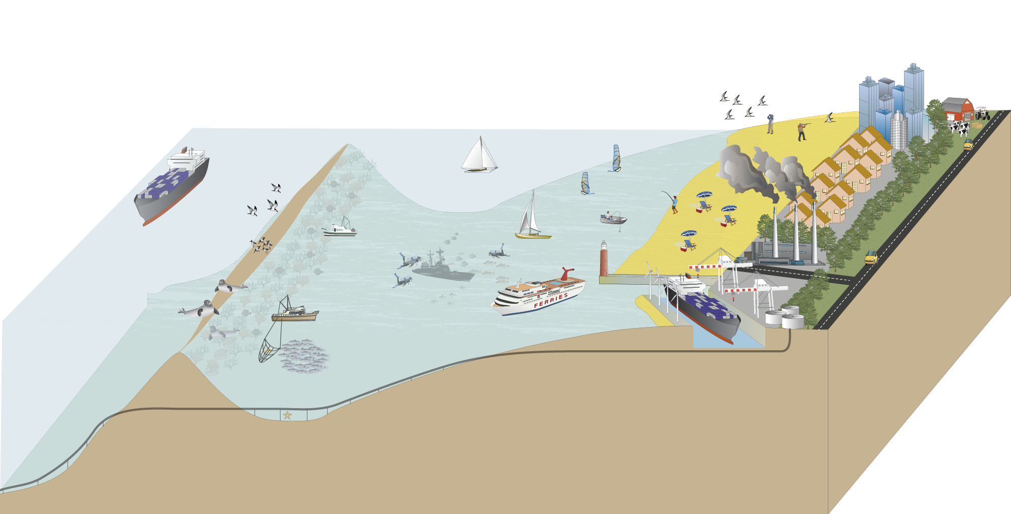 Le détroit du Pas-de-Calais est un des plus fréquenté au monde avec un trafic maritime intense. Outre les activités portuaires classiques, le site Natura 2000 des « Bancs des Flandres » est une zone sur laquelle s’exerce une multitude d’autres activités notamment récréatives.